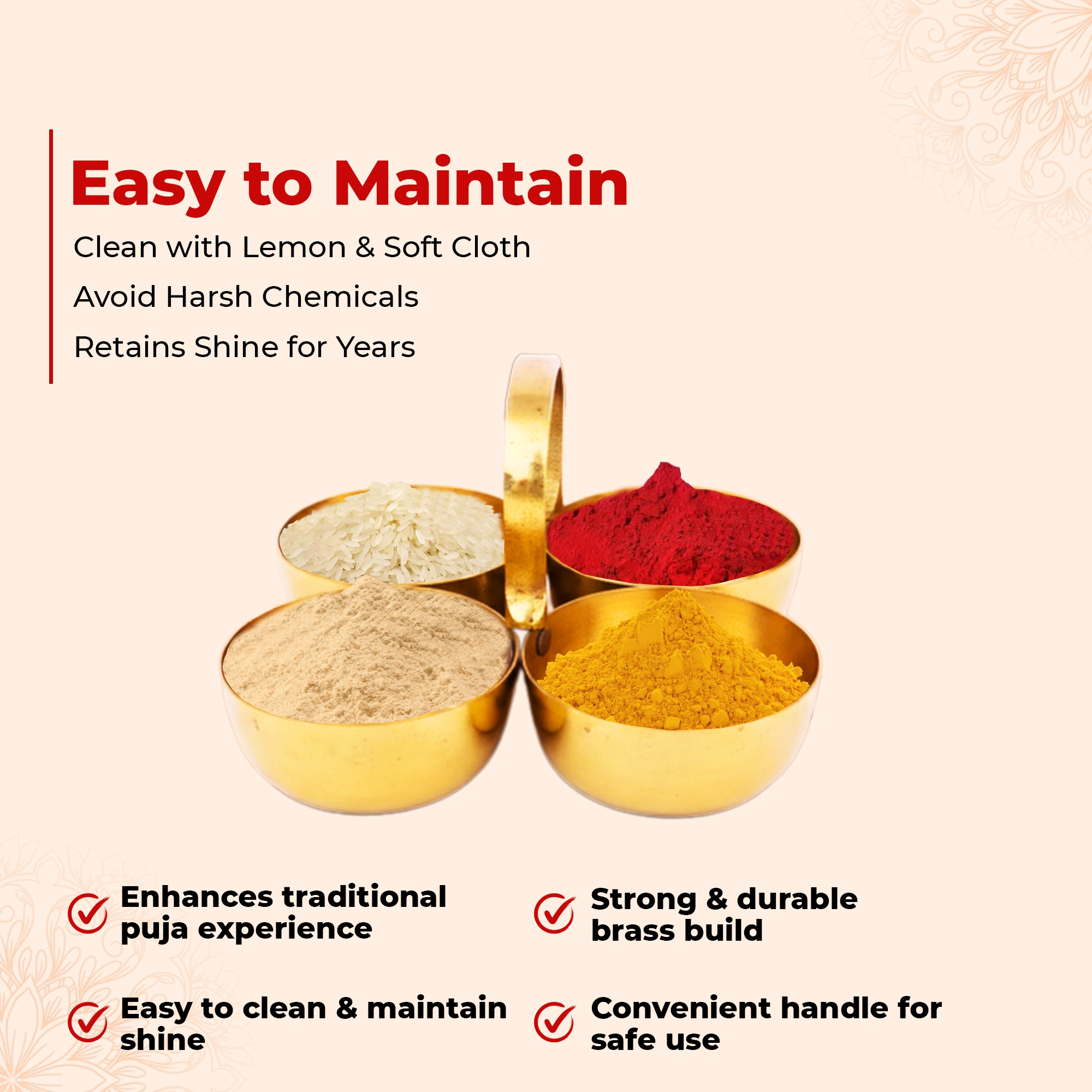 - Material: Premium Quality Brass (Peetal)