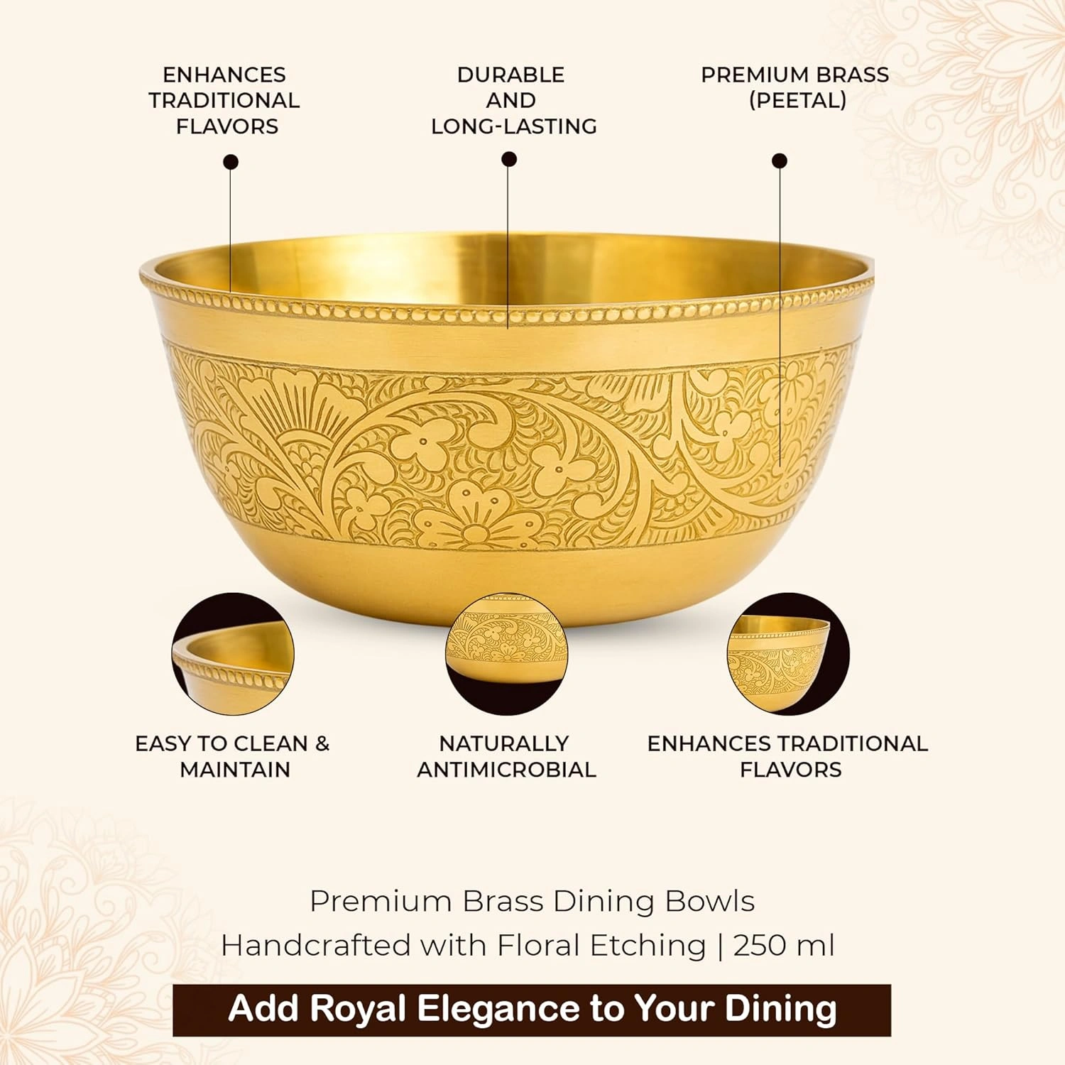 About This Floral Etching Brass Dining Bowl