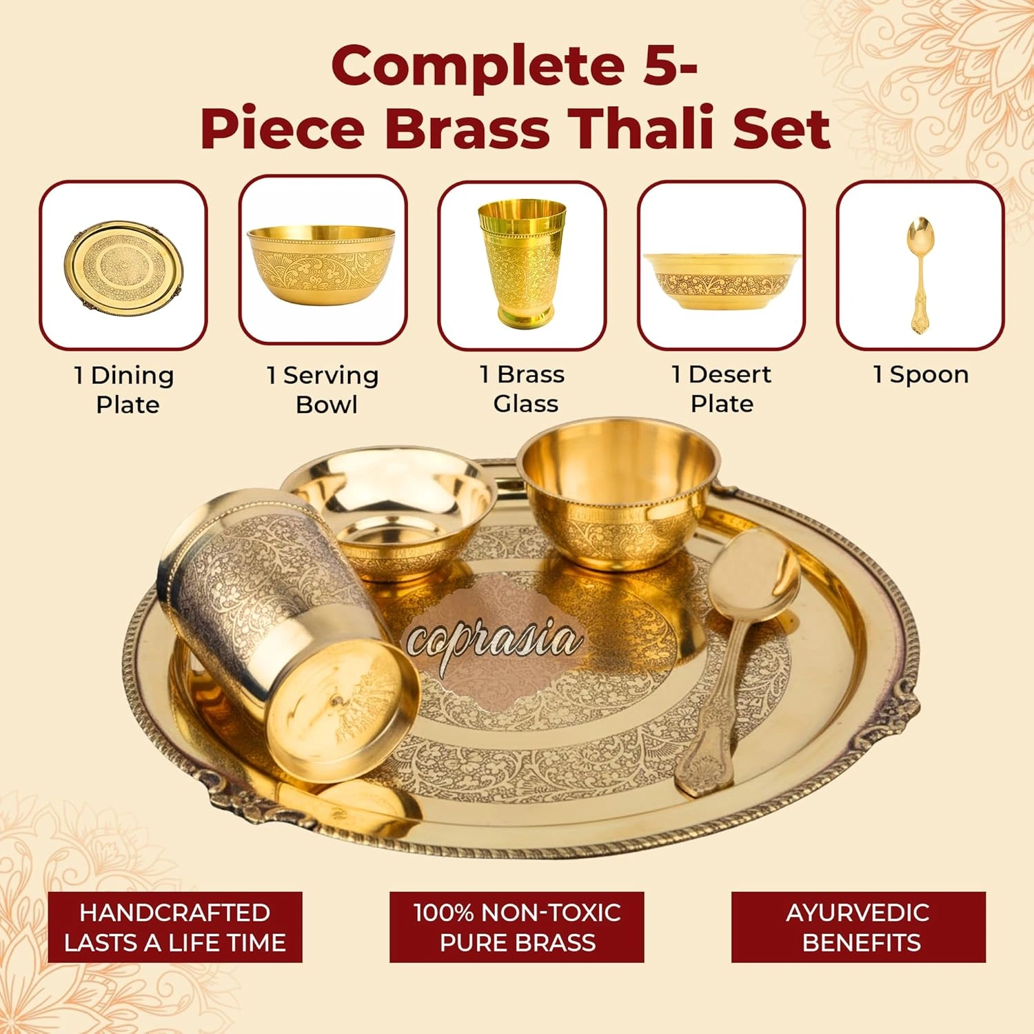 Ideal for weddings, housewarmings, festivals, and gifting purposes, this brass thali set is a thoughtful choice that adds cultural charm and elegance to any occasion.