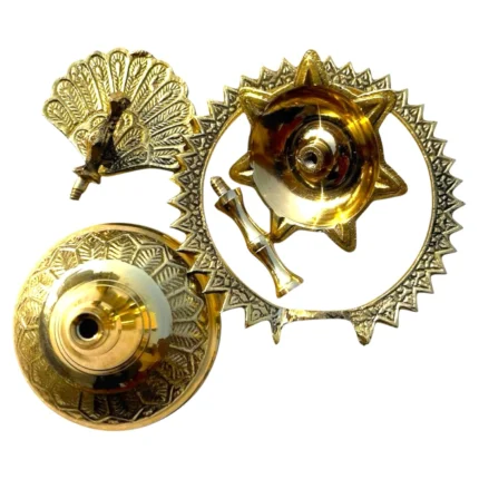 Brass Peacock Diya Stand with Sun Frame | Decorative Oil Lamp