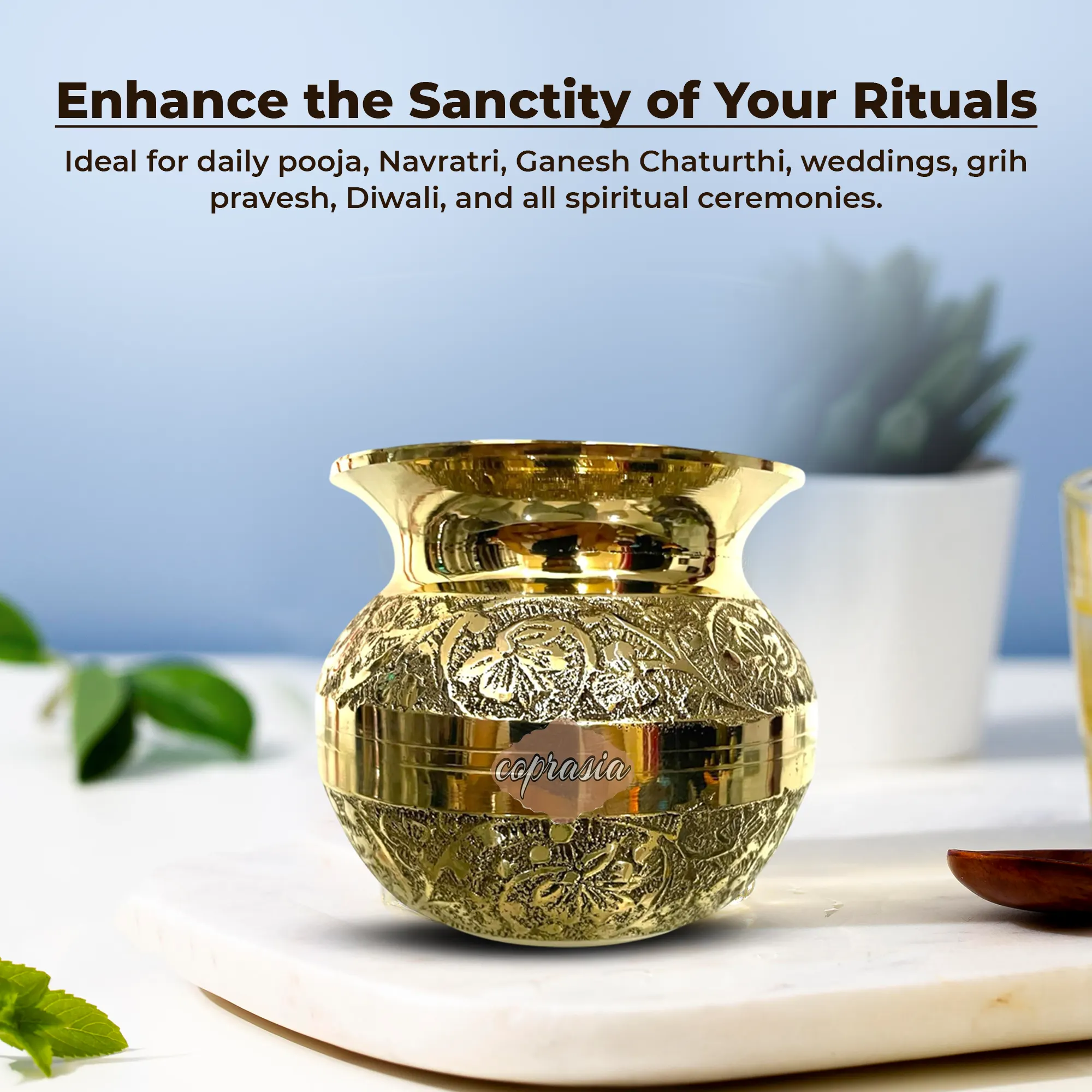 Invite divine blessings and positivity into your home with this Pure Brass Kalash for Pooja, expertly handcrafted for all traditional Hindu rituals and ceremonies.